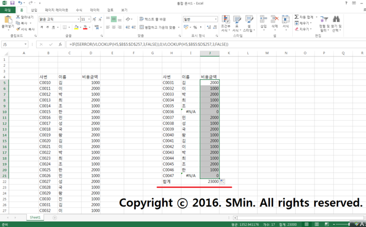 01. 비용금액은 3번째 컬럼이므로 3번째 컬럼으로 바꿔주고 비용금액도 vlookup해보자.!