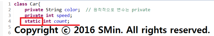 00. 'Car'클래스에 'static'으로 접근권한을 주고 'count'변수를 하나 만들자.