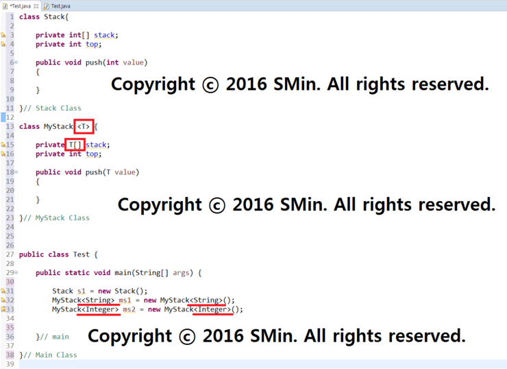 00. MyStack<T> 라고 둬서 바꿔주고 싶은 곳에 <T>를 둔다.