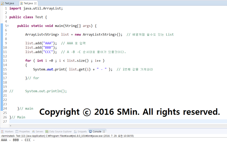 list.add("CCC"); // A -B -C 순서대로 들어가 있을것이다.