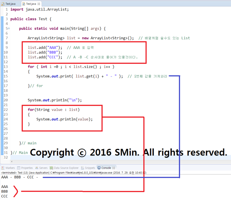 System.out.print( list.get(i) + " - " ); // i번째 값을 가져와라