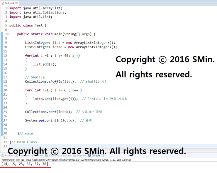 Collections.sort(lotto); // 오름차순 정렬