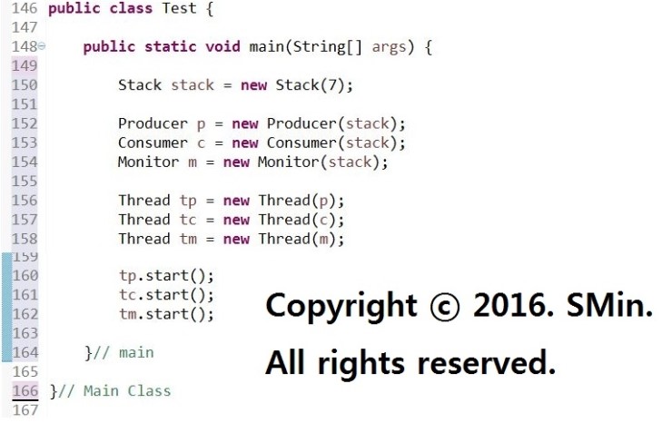 이 때, 세개의 쓰레드가 동일한 스택을 공유해야하기 때문에 스택을 파라미터로 준다.