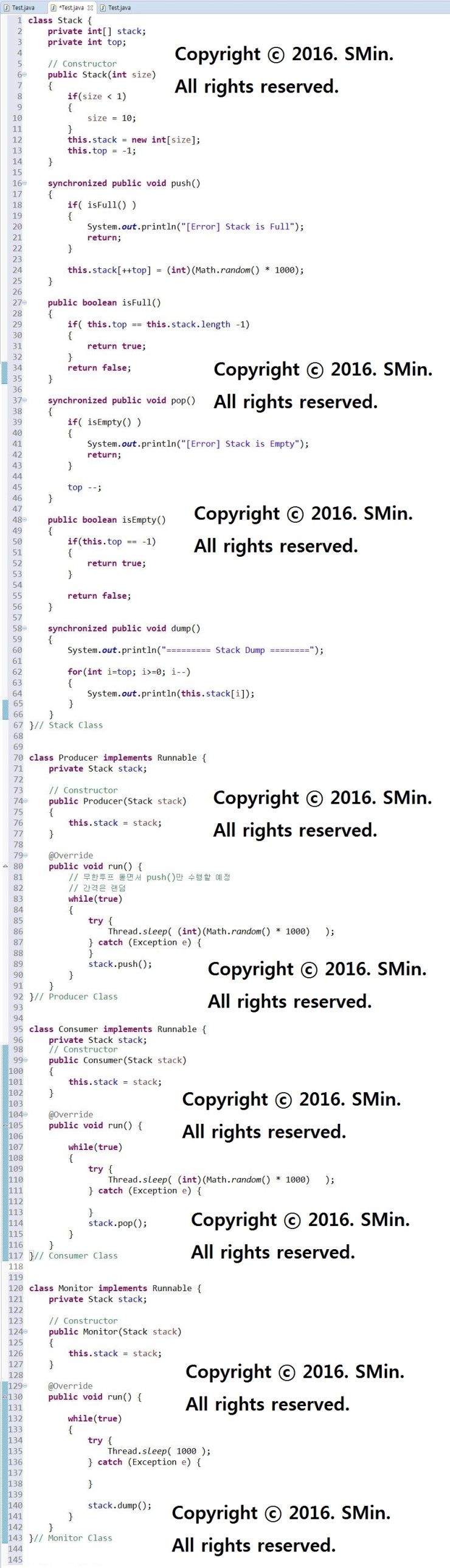 쓰레드를 이용해서 스택을 만들고, 이를 세개의 쓰레드로 각각