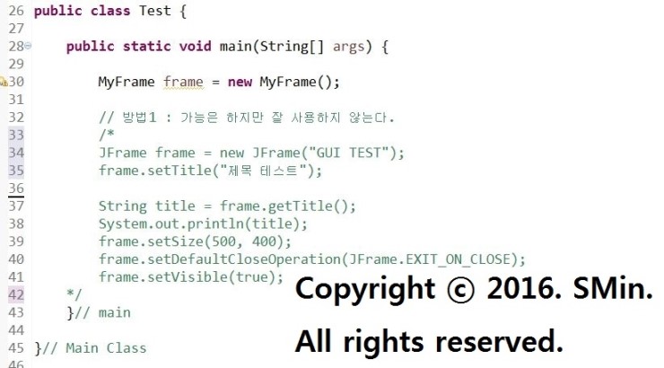 01_2. 평소처럼 'MyFrame' 객체를 만들어서 사용하면된다.