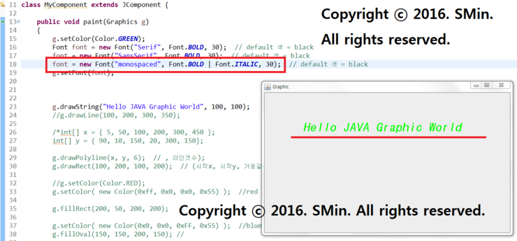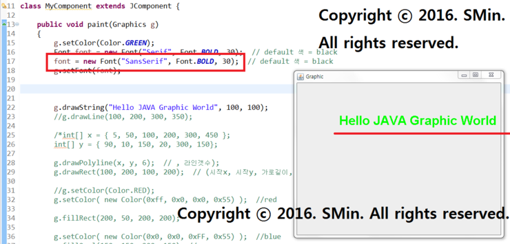 01. 위에서 만든 폰트객체의 폰트변수를 사용하여 이번에는 'SanSerif' 글씨체로 해보자.