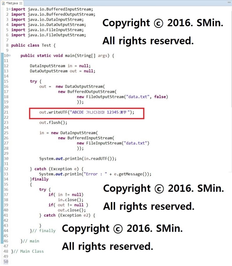00. 'writeUTF'메소드를 사용해주면 된다.