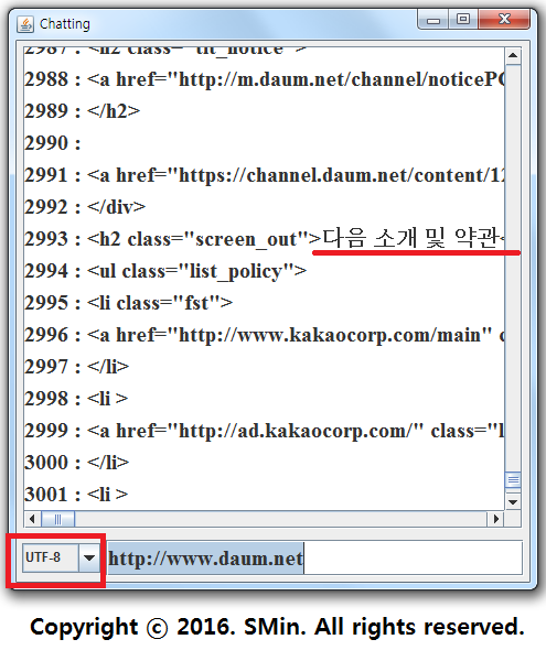 GUI 창에 HTML 을 파싱 하는 방법임.