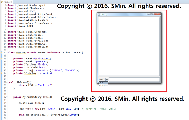 01. 콤보박스에 'UTS-8'과 'EUC-KR' 선택할 수 있게 나온다.