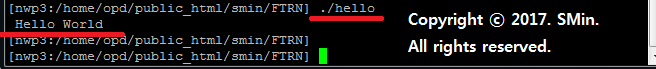 02. ./hello 로 실행시켜보면 정상작동됨을 확인할 수 있다.