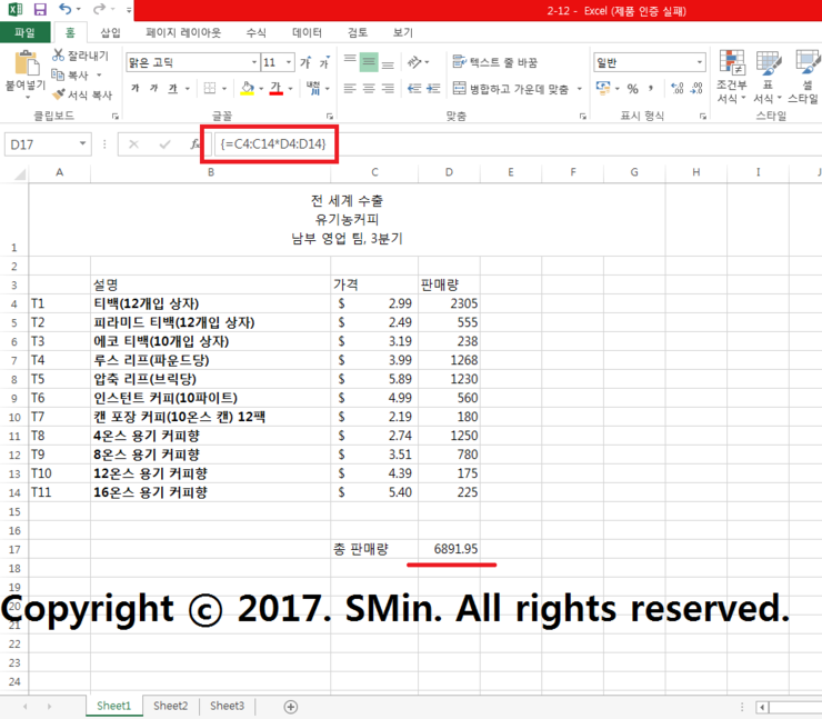 배열수식이란 범위와 범위의 계산을 나타낸다.