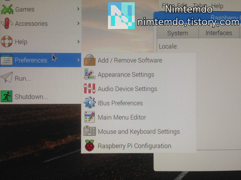라즈비안OS 메뉴 -> Preferences -> Raspberry Pi Configuration 으로 들어갑시다.
