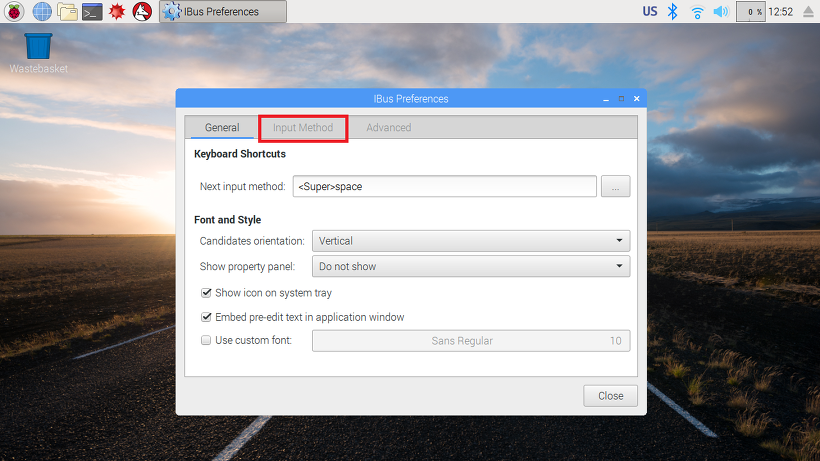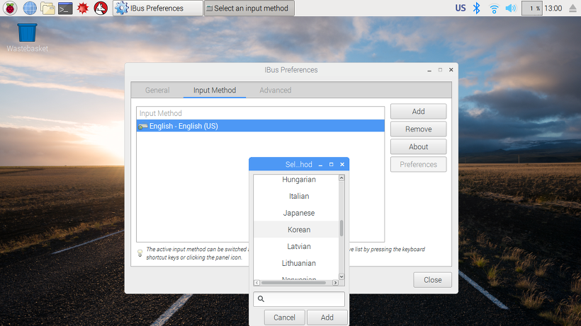 IBus의 설치가 완료되고 나면 라즈비안OS의 시작메뉴(?)에 IBus Preferences가 생길 겁니다.
