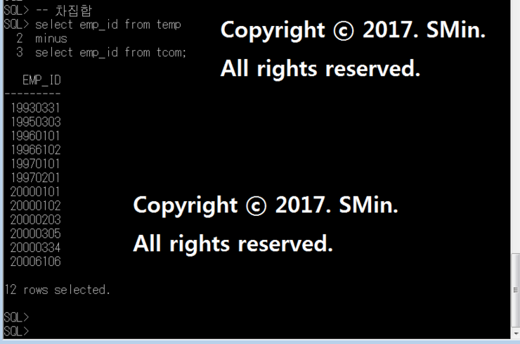 | [ SQL ] 집합연산자(UNION, INTERSECT, MINUS)의 사용 (0) | 2020.03.12 |