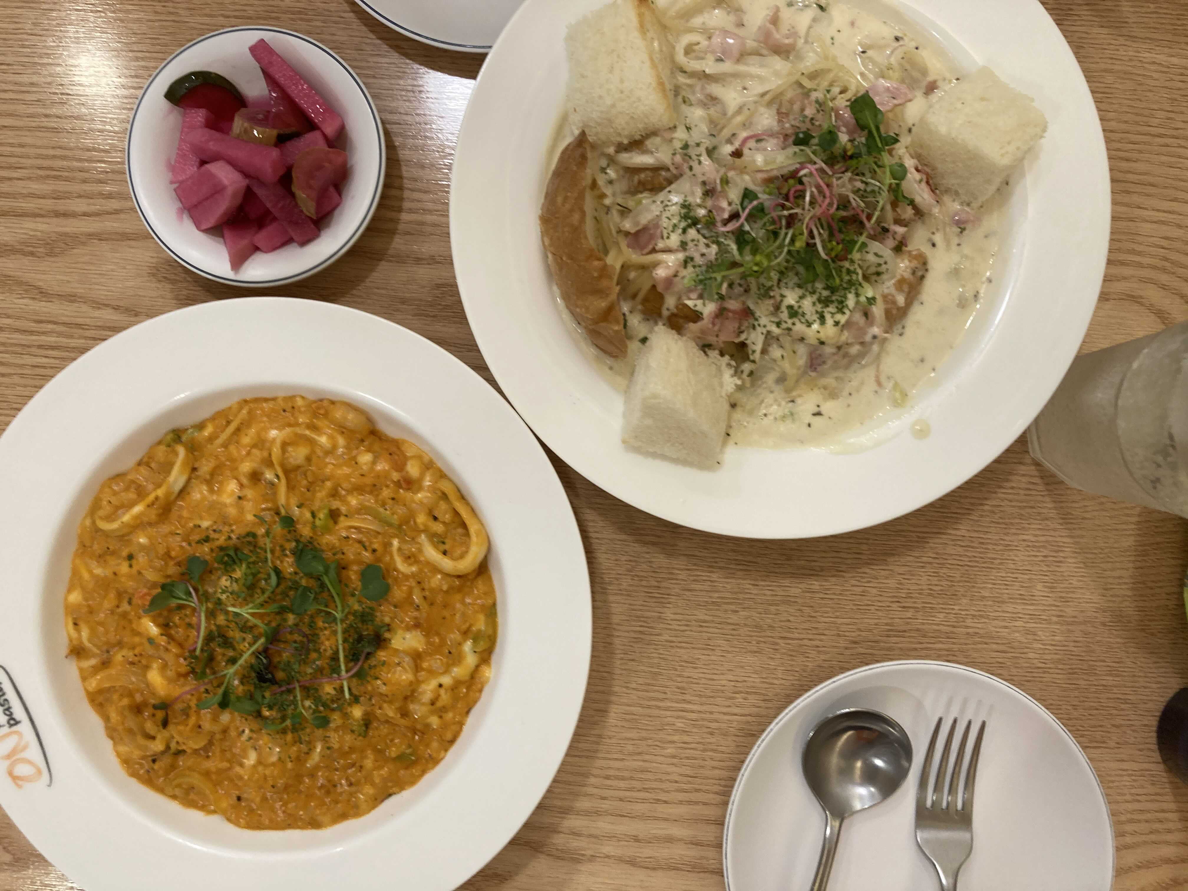 우리는 빠네스파게티와 리조또를 시켜서 나눠먹었다.