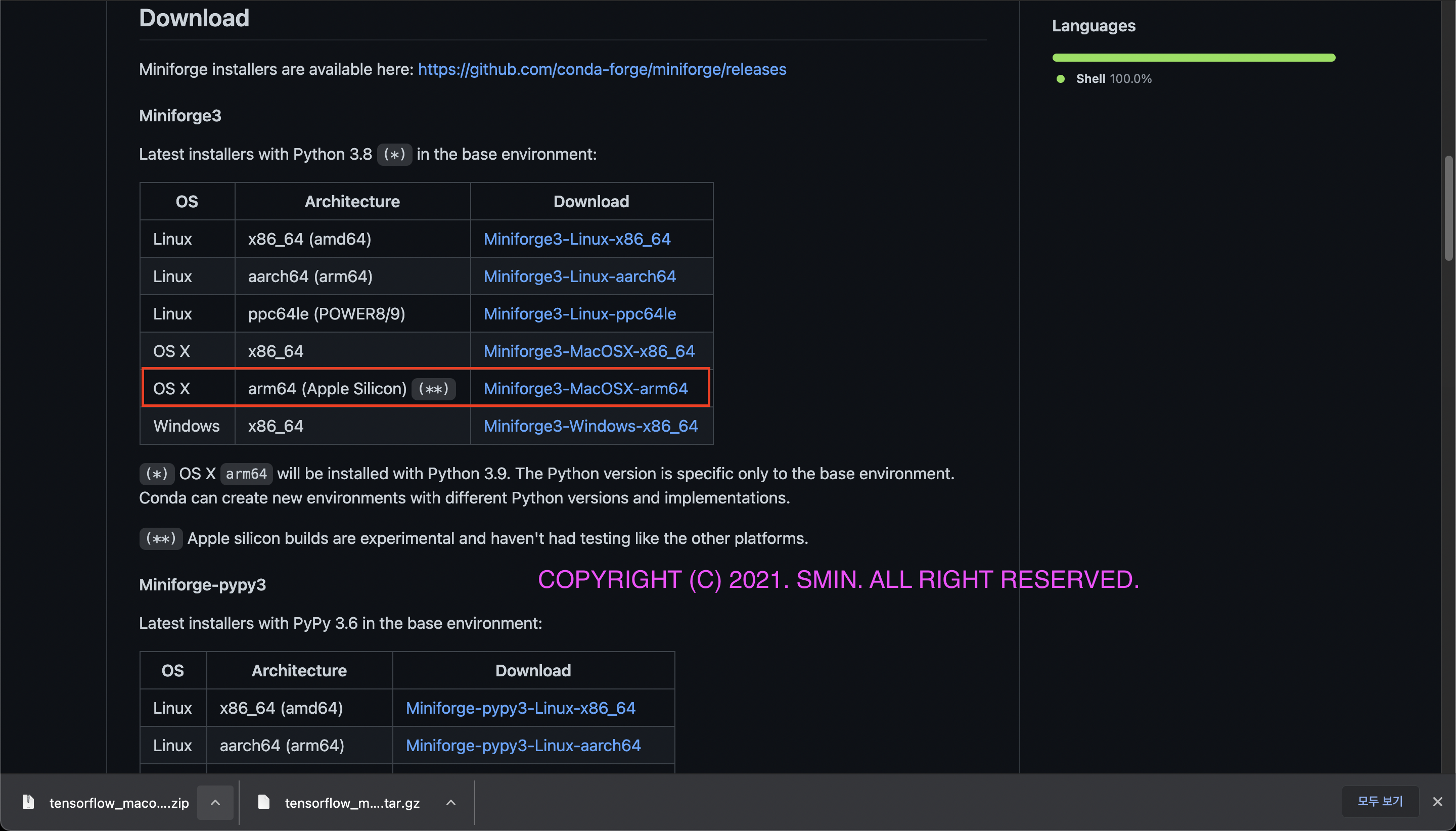 5. Download the zipped tar file from apple/tensorflow_macos