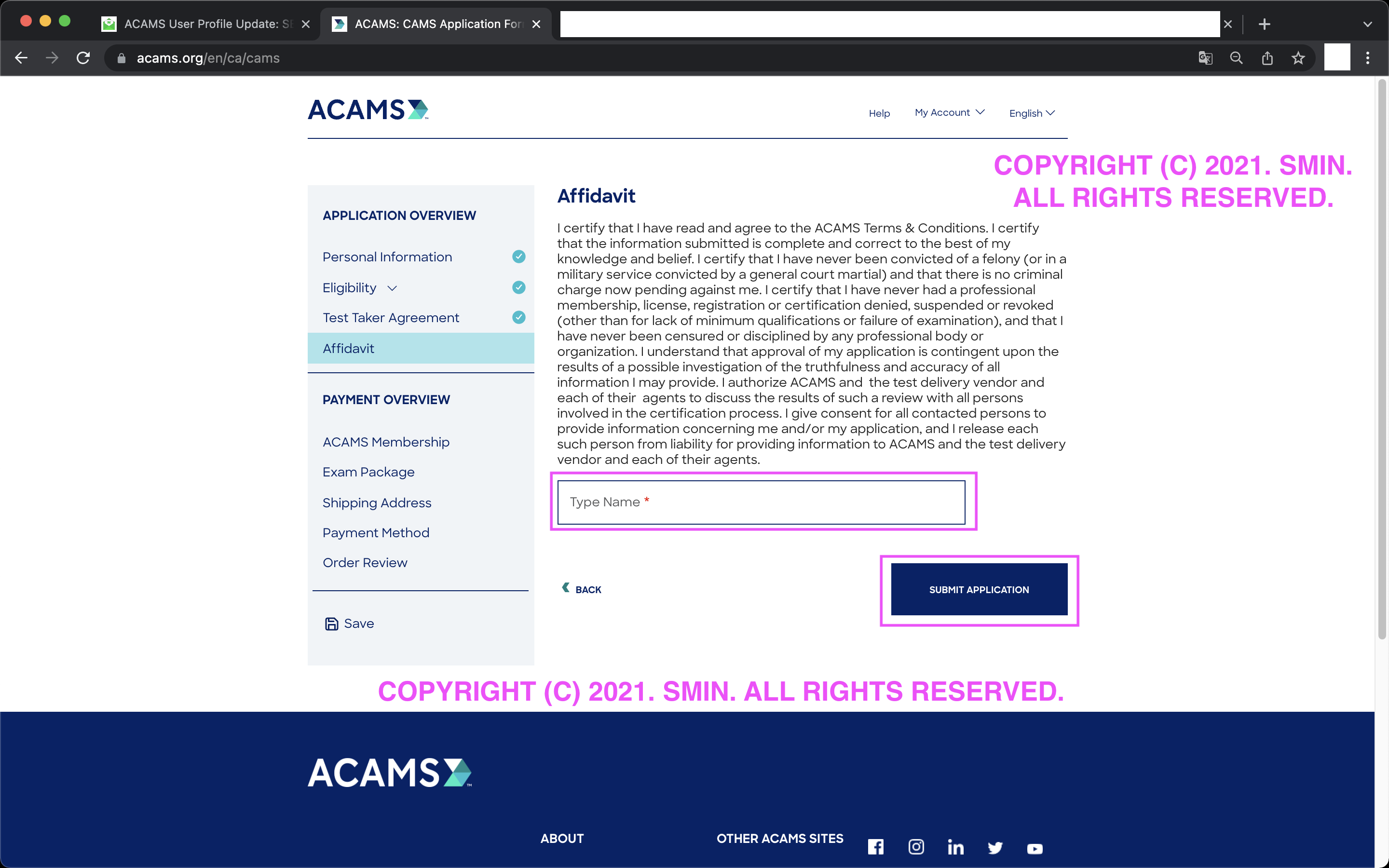 10. Affidavit 내용 읽어보고 서명하고 'SUMMIT APPLICATION' 클릭