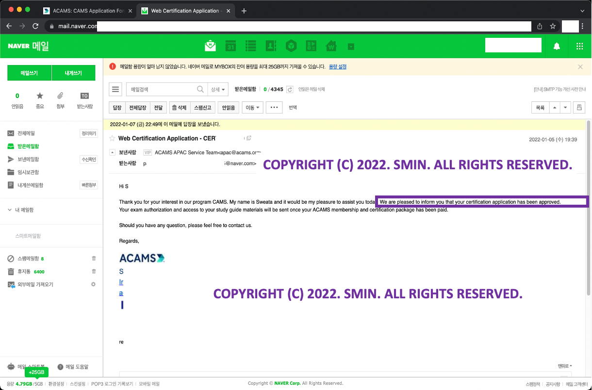 - ACAMS 멤버쉽과 자격증 패키지에 돈을 내고 지원서가 승인되면 스터디가이드자료에 시험 허가와 접근은 메일로 보낼 것이다.