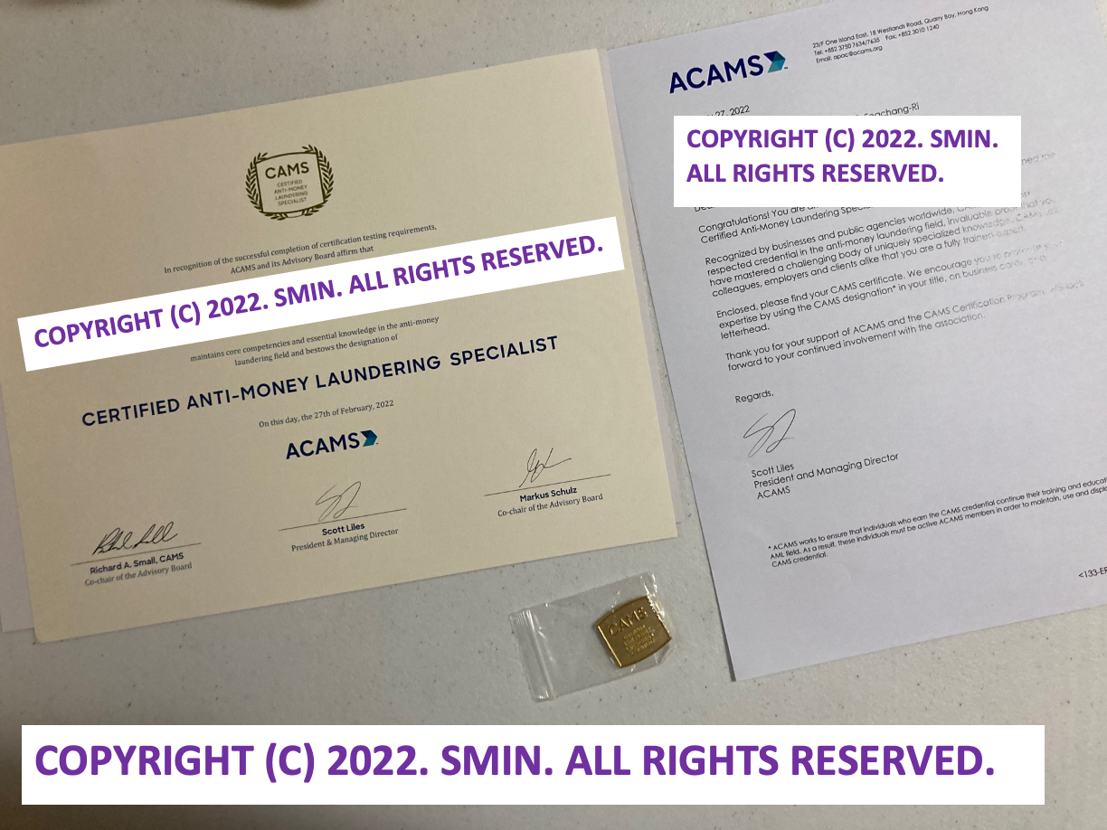 이것으로 이제 CAMS/ACAMS에 대한 긴 여정을 마무리 지어보고자 합니다~