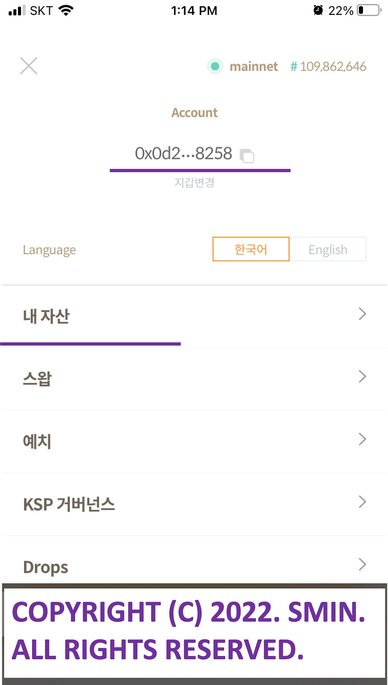 6. 우측 상단에 더보기를 눌러 내 지갑과 연결된 것을 확인할 수 있다.