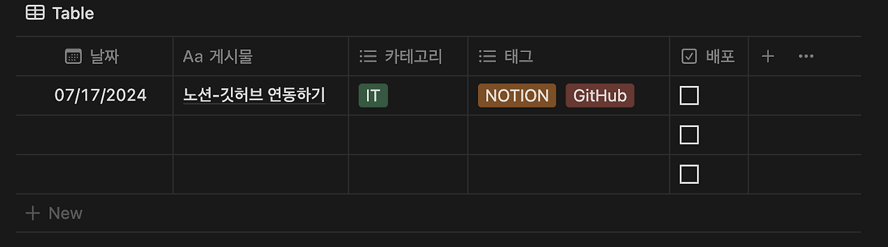 ## 2. 노션에서 사용/연동 할 데이터베이스 생성