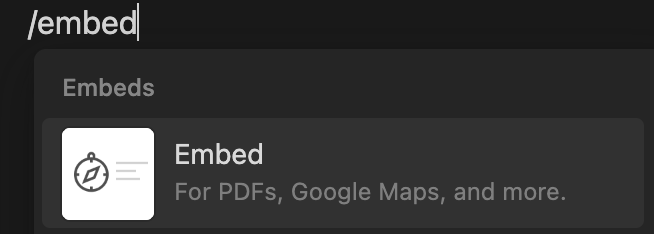 4-8. 노션에서 /embed 를 검색해서 임베드 블록을 생성한다.