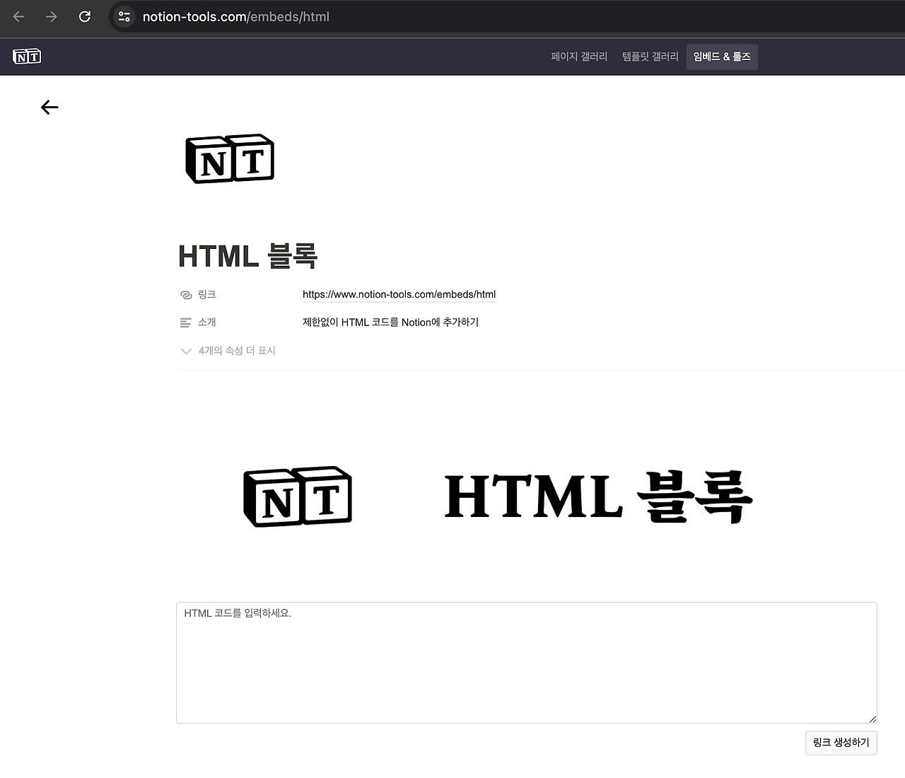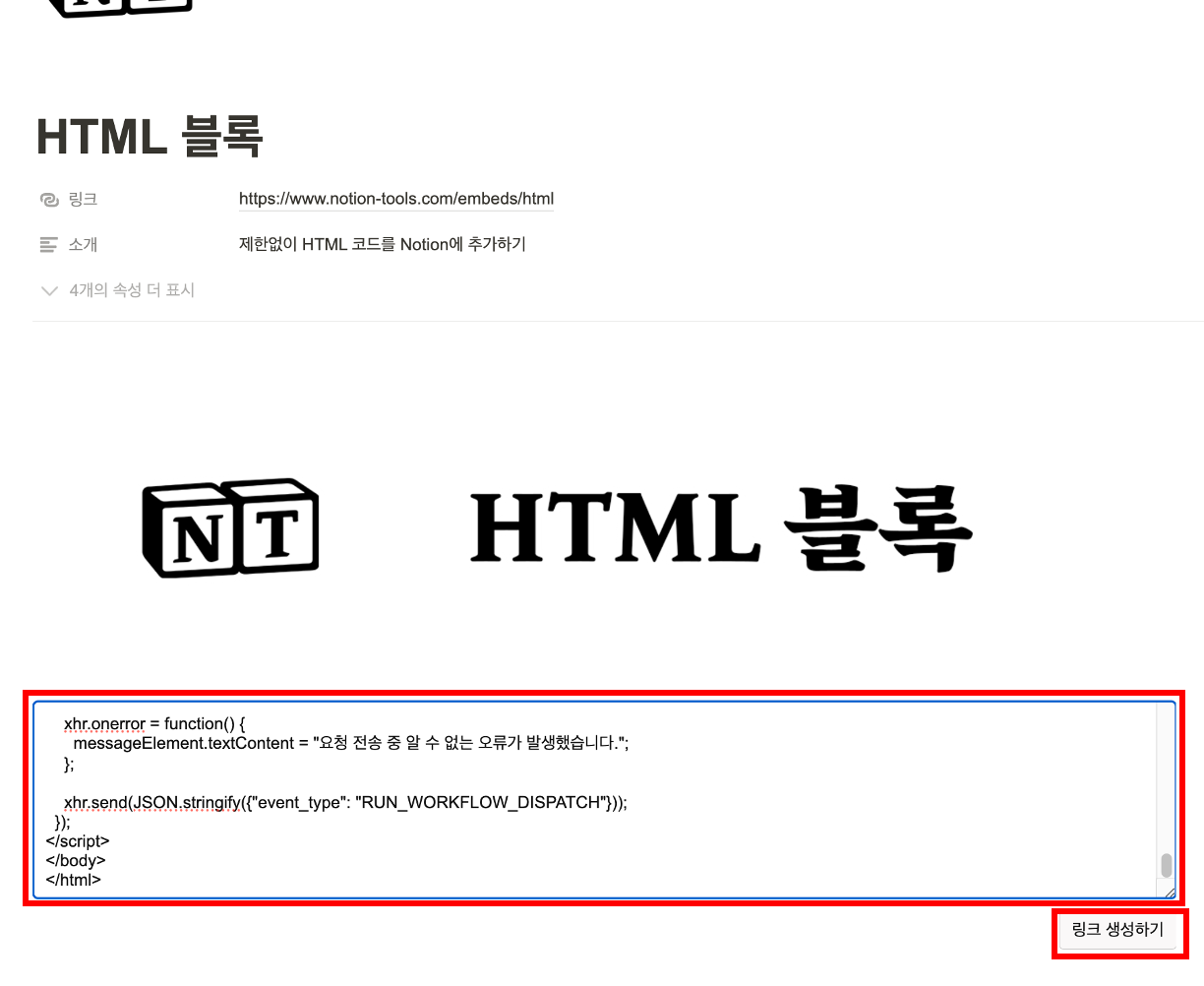 4-6. 배포 버튼을 링크로 만들기 위해 아래HTML블록생성 링크로 접속한다.