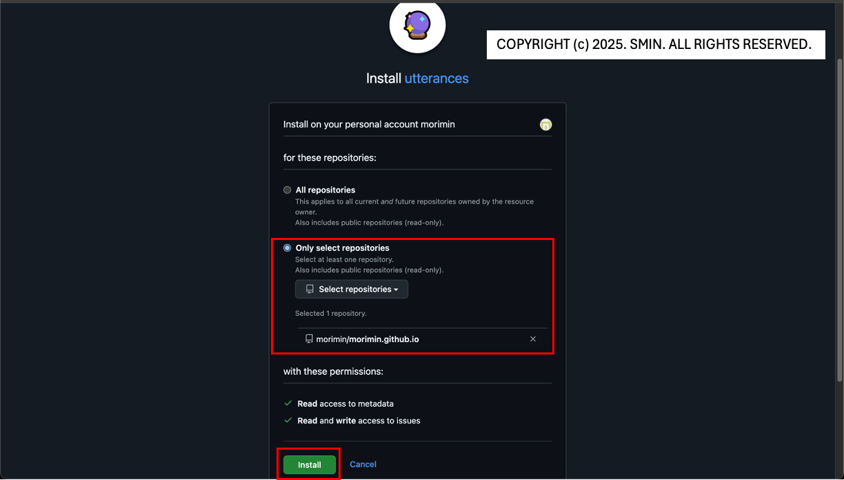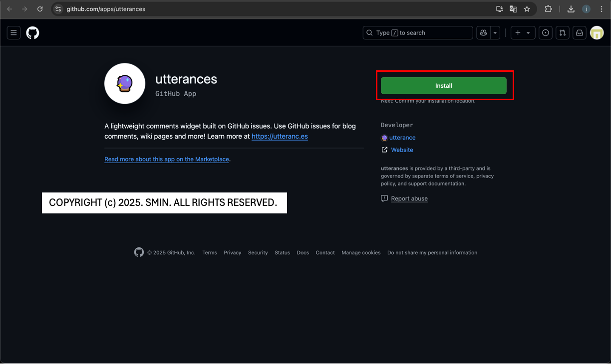 1. 깃허브에 utterances 앱을 추가한다 : https://github.com/apps/utterances