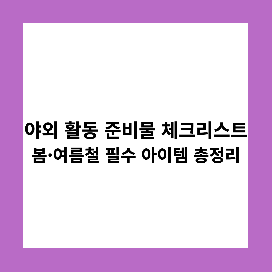 이번 글에서는 야외 활동을 안전하고 즐겁게 즐기기 위한 필수 준비물 리스트, 상황별 추천 아이템, 계절별 유의사항까지 정리해 드립니다.