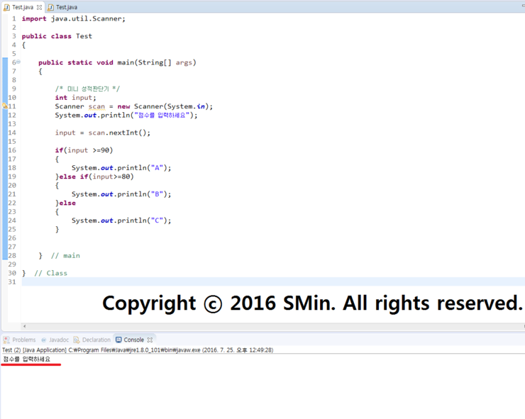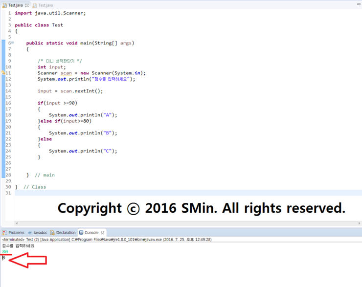 ※ IF문을 이용하여 미니 성적 테스터기를 만들어보자.