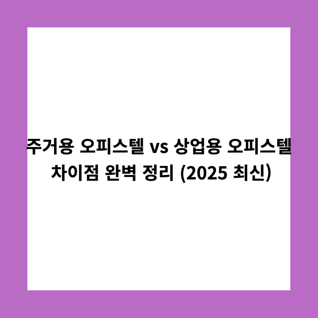 이번 글에서는 주거용 오피스텔과 상업용 오피스텔의 개념, 세금 및 법적 차이, 투자 시 유의사항을 정리했습니다.
