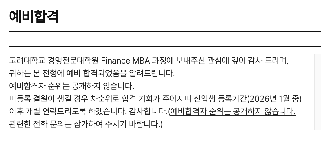 | 26학번, 고려대학교 MBA 면접 후기 (1) | 2025.12.13 |