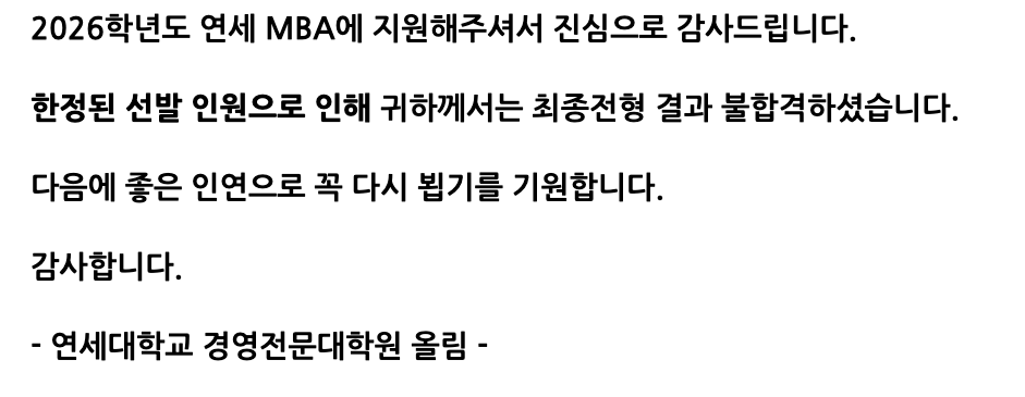 | 26학번, 연세대학교 MBA 면접 후기 (0) | 2025.12.13 |