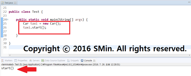 ; 해석하면 위에 만들어놓은 Car 타입의 형태로 taxi라는 객체를 새롭게(new) Car()클래스를