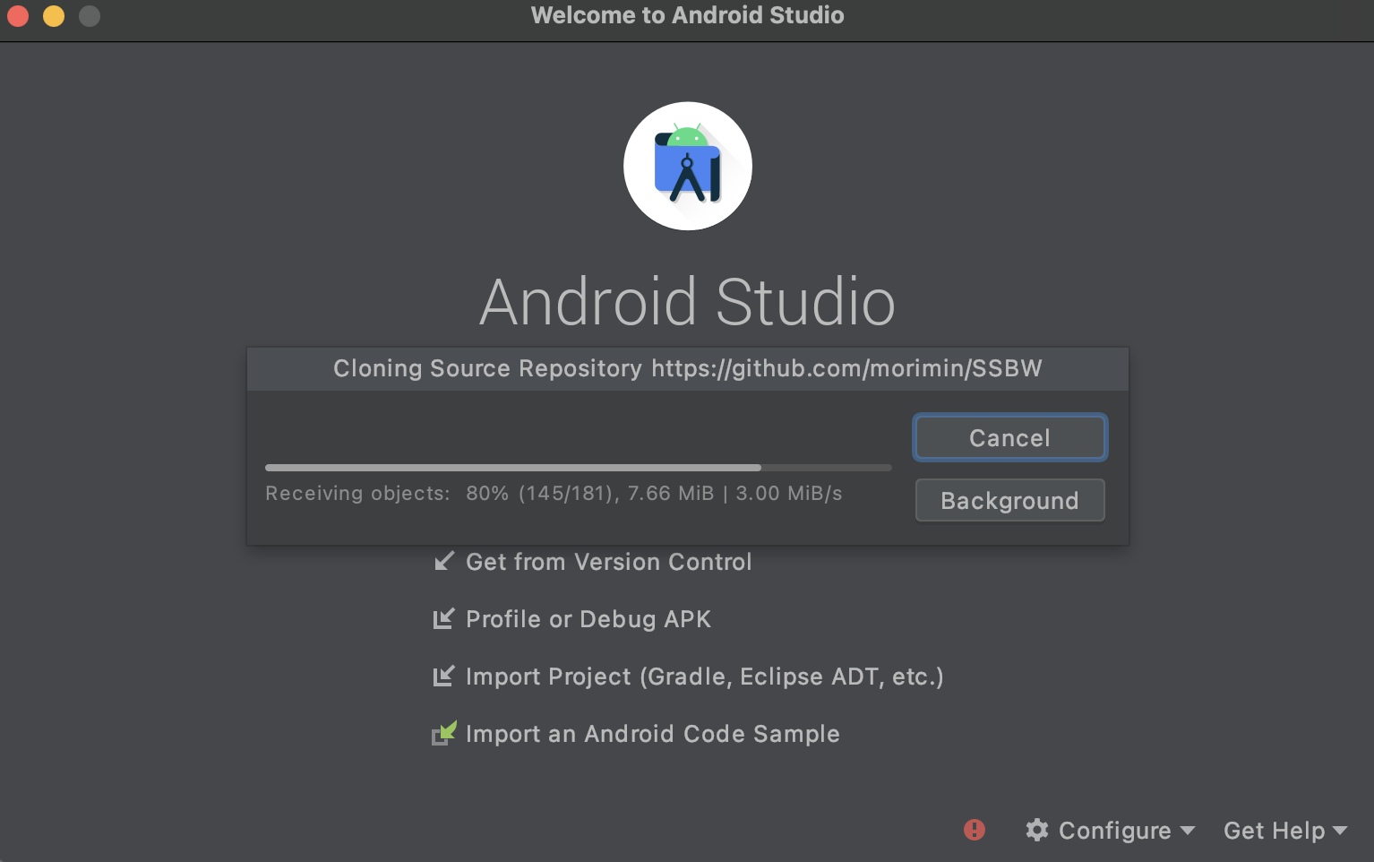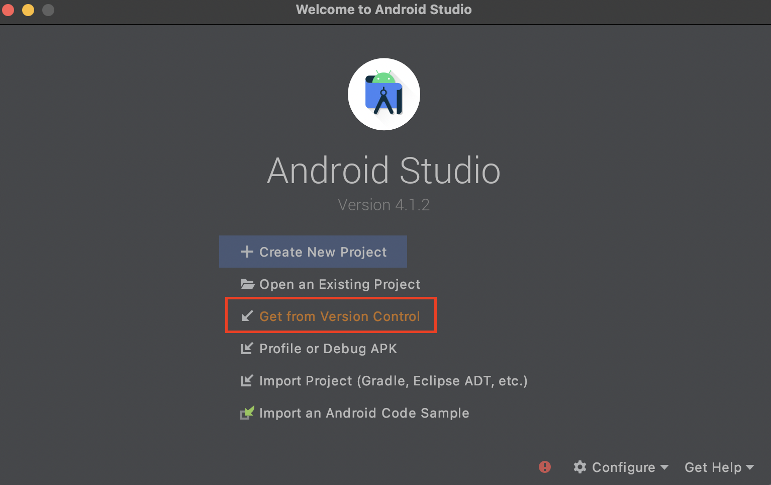 ㅁ. 안드로이드 스튜디오 설치 후 'Get from Version Control' 클릭