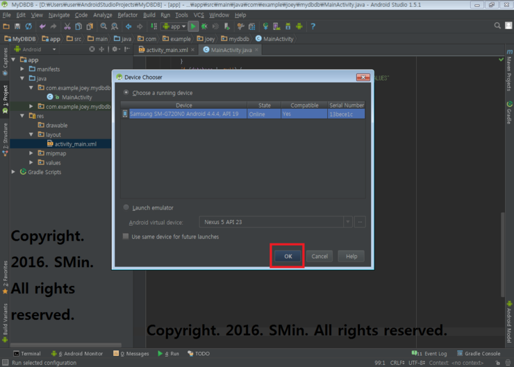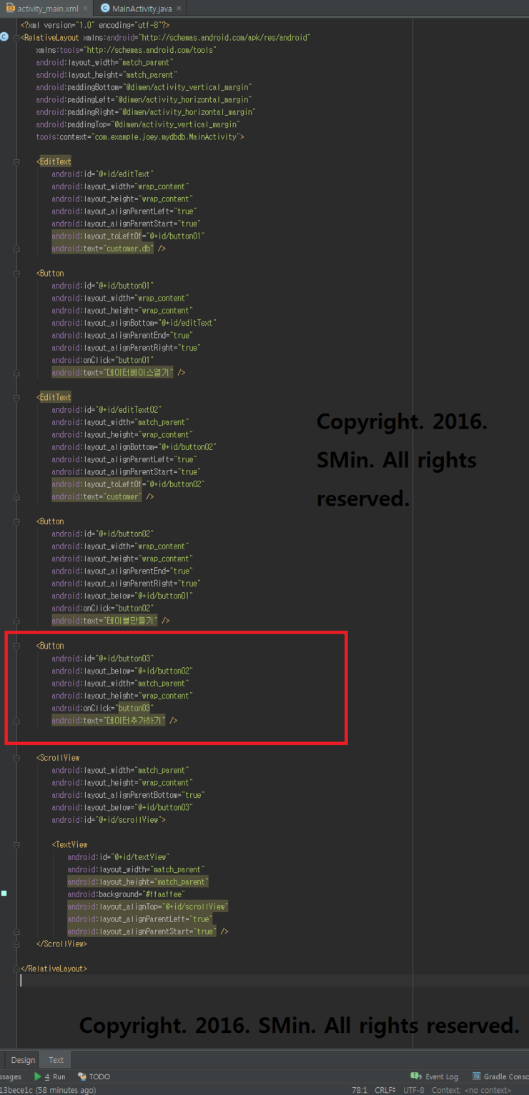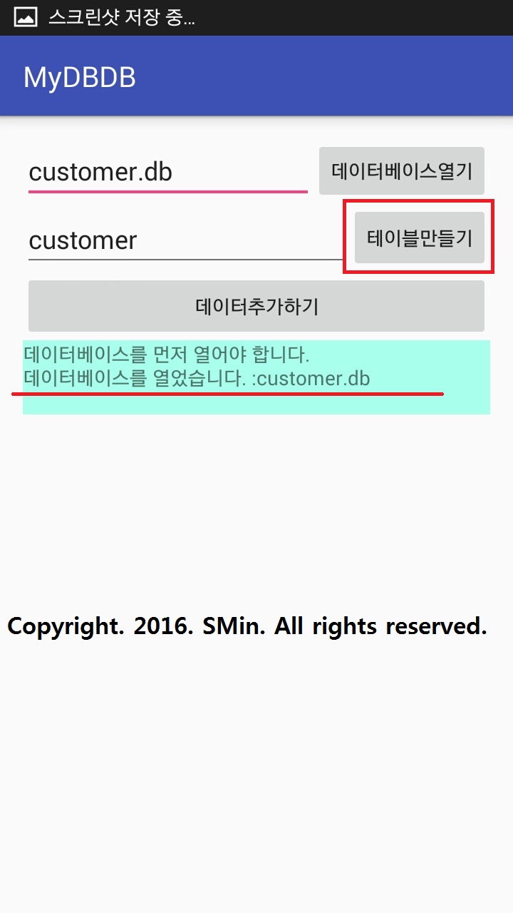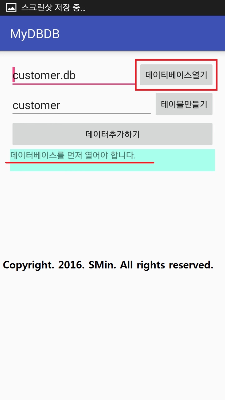 05. 텍스트가 뜨는것을 확인하고 데이터베이스열기 버튼을 누른다.