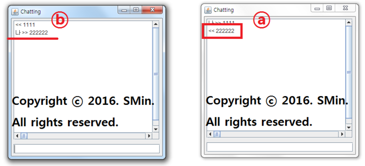 04. 마찬가지로 b채팅창에도 222222를 입력해보자.