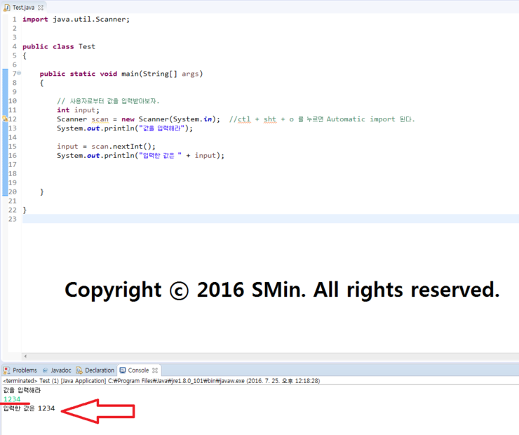 Scanner scan = new Scanner(System.in); //ctl + sht + o 를 누르면 Automatic import 된다.