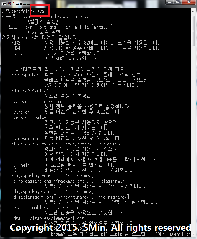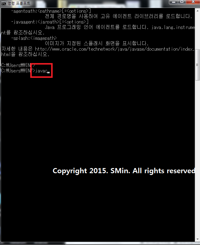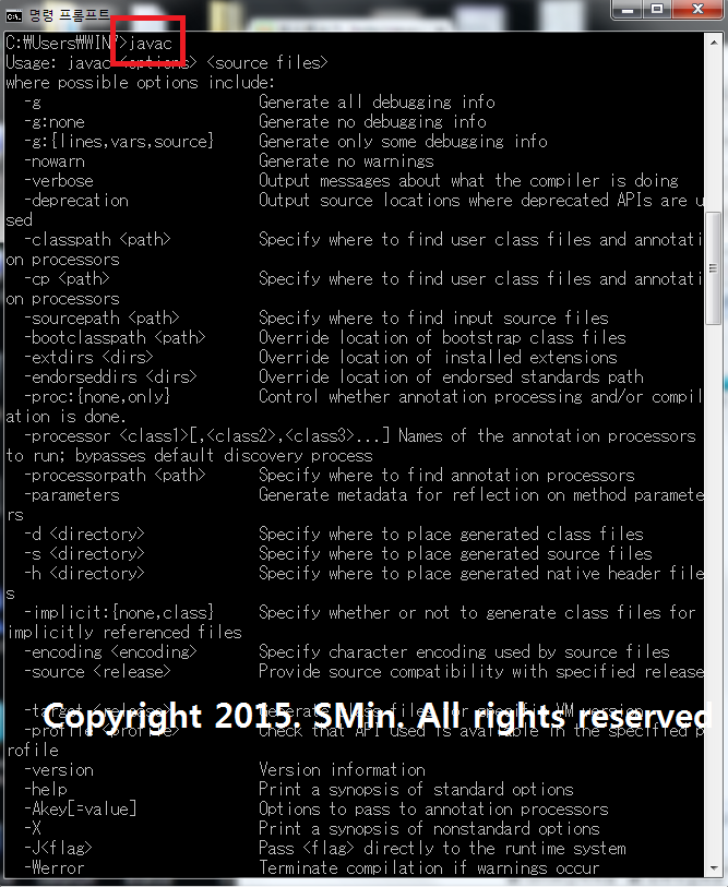 016. 컴파일러도 잘 깔렸는지 확인하기 위해 javac 를 입력해본다.