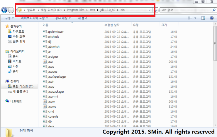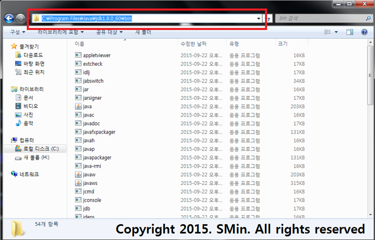 보통은 C:\Program Files\Java\jdk1.8.0_60\bin 위치에 디폴트 값으로 설치된다.