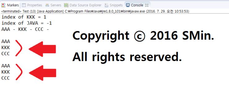 System.out.println("index of KKK = " + index); // i 번째 자리에 있다.