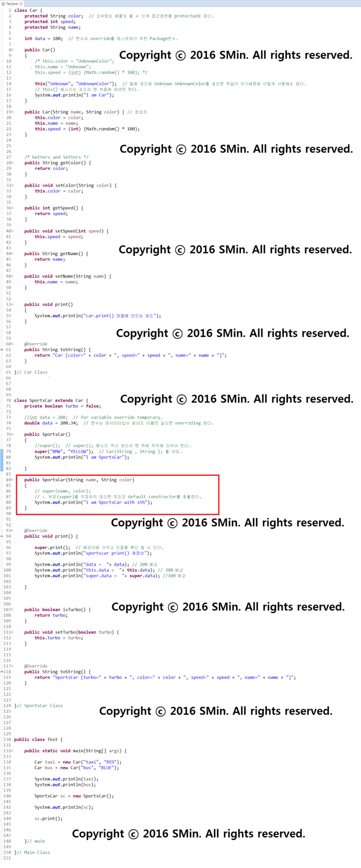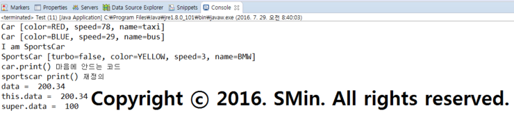 01_2. 출력을 해보면 'sc'객체를 만들어서 'I am SportsCar'가 출력되려고하는데 상속받은 것이있어서