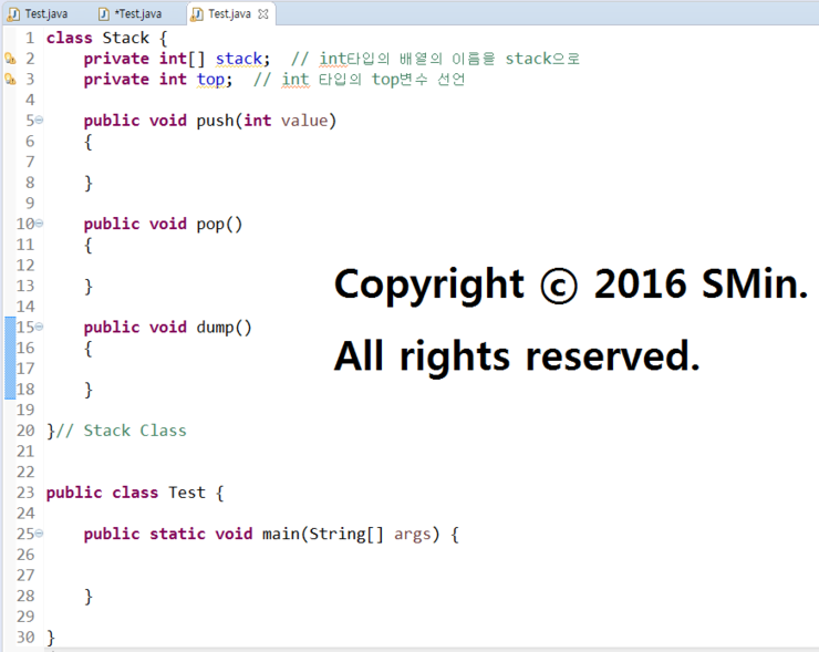 private int top; // int 타입의 top변수 선언