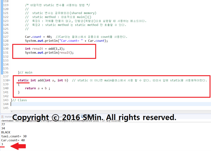 02. 바람직한 Static변수 사용방법은 객체를 만들어서 각각하기보다는 클래스 자체에 변수를 재정의 시키는 것이다.