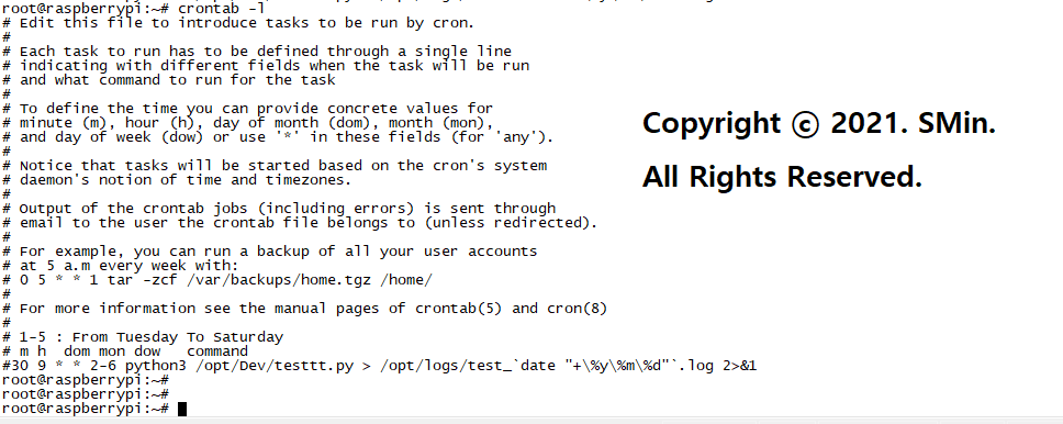 분 시 일 월 요일 명령어 > 로그위치/로그파일이름 2>&1(에러출력)