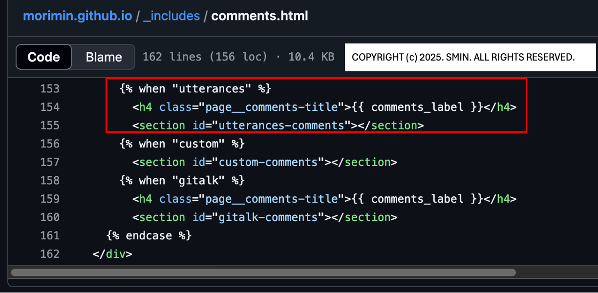 (혹은 _includes/utterances.html 파일로 생성 해 준다.)