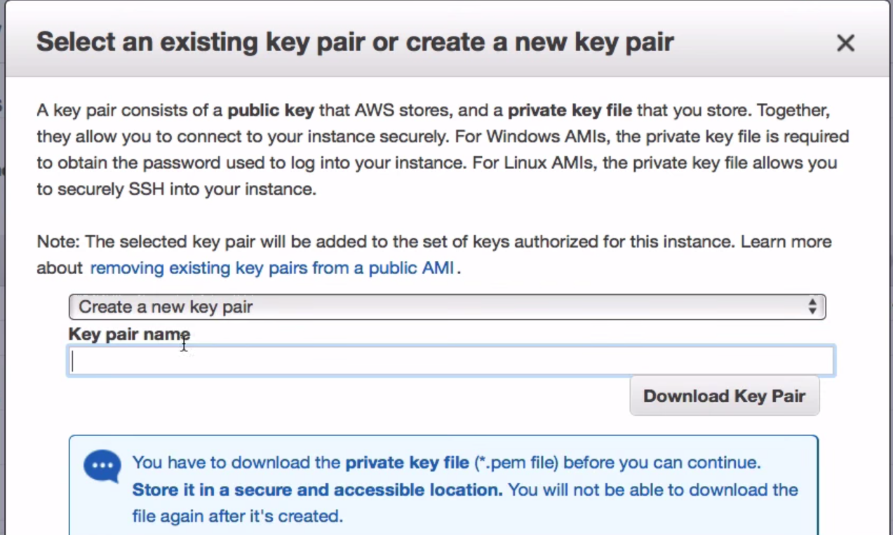 위에서 Launch를 누르게 되면 key pair를 생성하라고 한다.