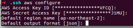region에는 한국을 의미하는 ap-northeast-2 (참고로 1은 일본) 을 입력하고,