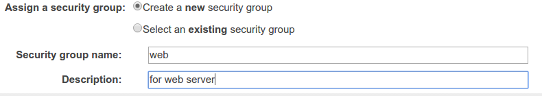 인스턴스를 새로 만드는 경우라면 Create a new security group을 선택하고, 그룹 이름과 설명을 달아줄 수 있다.