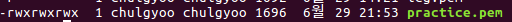 practice.pem의 권한을 바꿔줘야 한다.